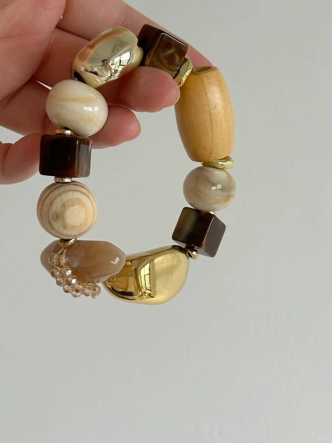 Make a statement with bold accessories with this South France autumn resin wood bead bracelet, featuring large, eye-catching beads and an elastic band for comfortable and versatile wear.