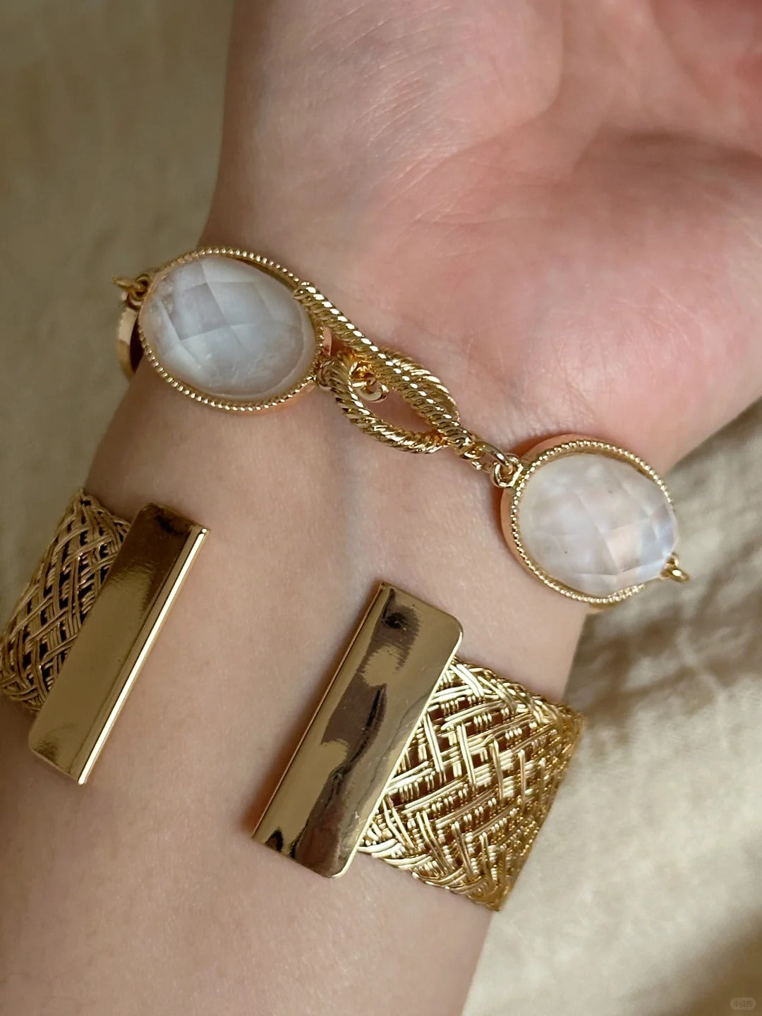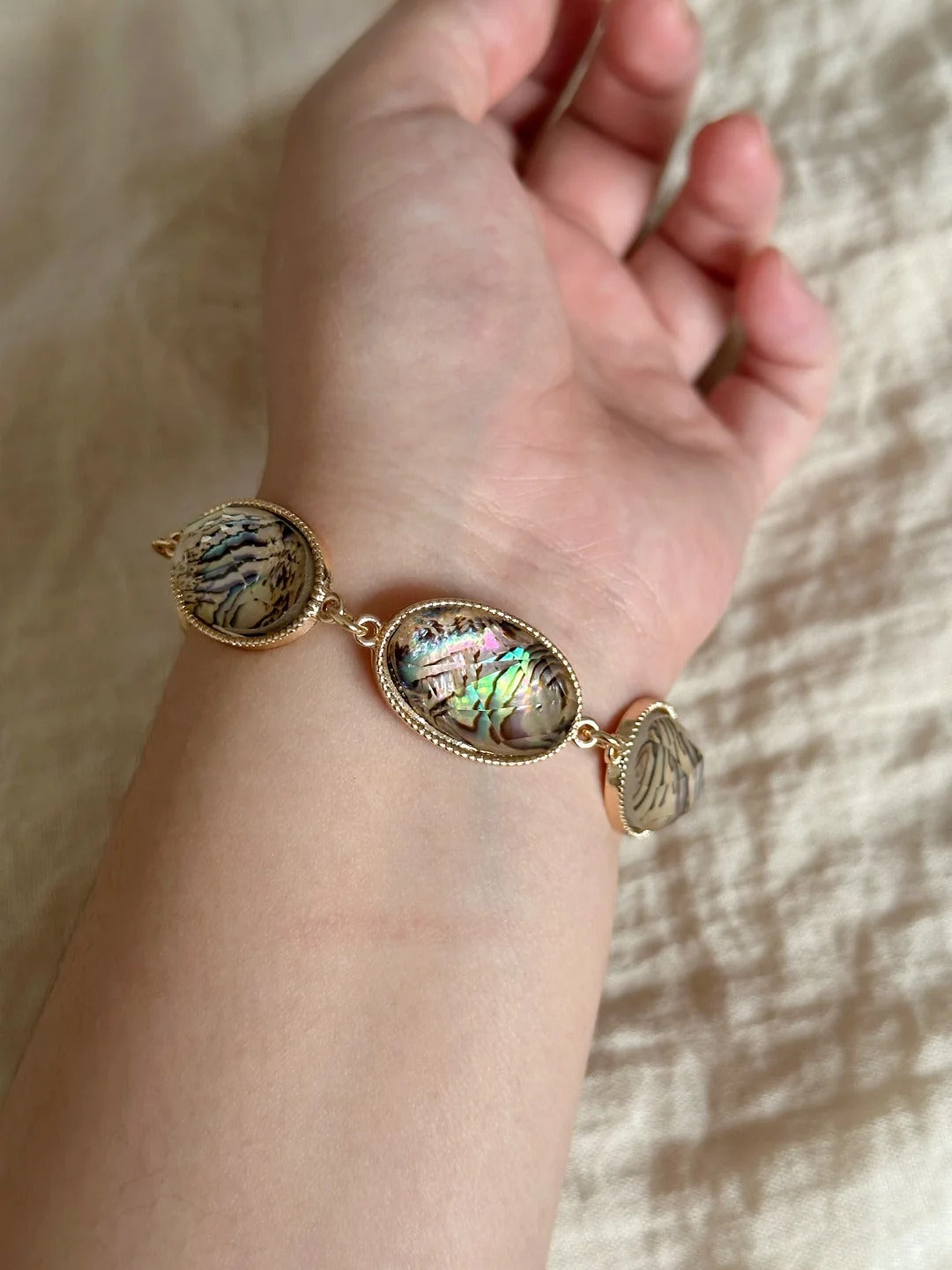 Add vintage charm to your look with this 20cm gold-edged shell bracelet, perfect for layering, outfit matching, and everyday style.