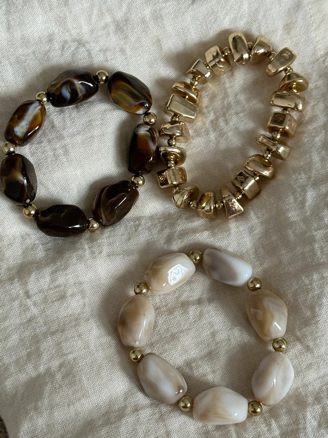 Add a glamorous and bold touch to your look with this vintage resin bead bracelet 3-piece set, perfect for stacking and layering.
