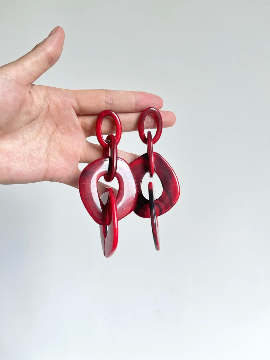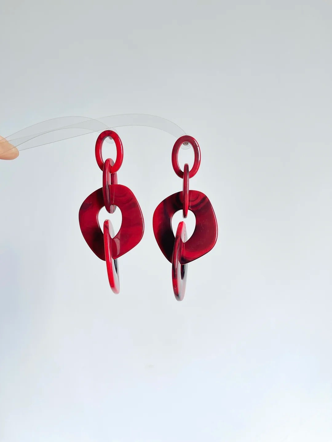 Turn heads with these Red Acrylic Geometric Earrings. Designed with bold shapes and a vibrant red hue, they embody confidence and modern edge. Lightweight yet impactful, these earrings are perfect for those who love expressive, daring fashion moments.