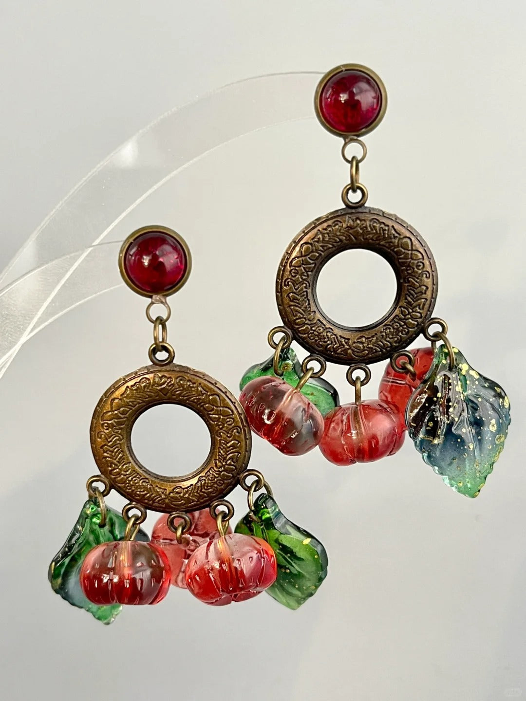 Step into the vintage charm of Eden Garden with these glass earrings in rich red and antique bronze hues. Their antique-inspired design and distinctive color mix evoke a sense of old-world elegance and artistry, perfect for unique, retro-inspired outfits.