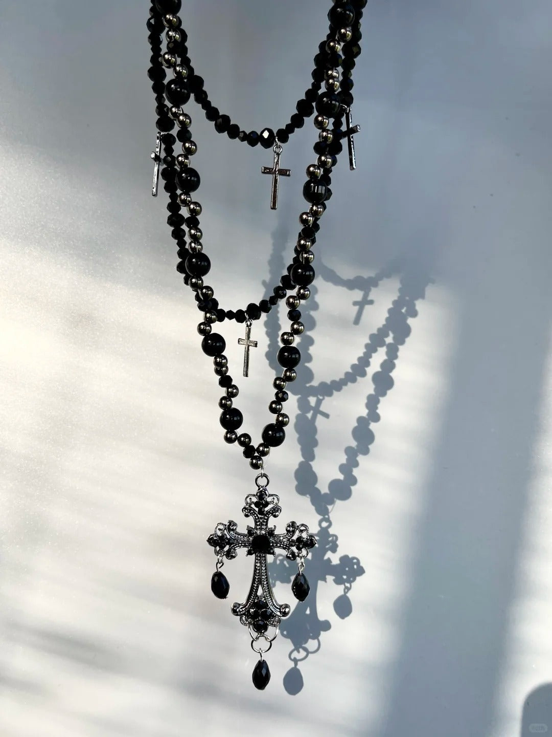 Make a bold gothic statement with this Gothic Cross Black Multi-Layer Necklace. Featuring layered chains and a striking cross pendant, it’s perfect for Halloween, edgy outfits, or dramatic layering, adding a dark, stylish accent to any look.