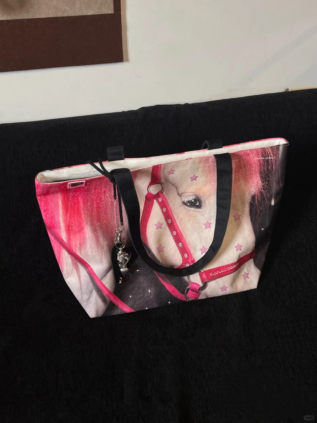 Make a bold statement with the Pink Horse Tote Bag — a trendy Y2K fashion tote that’s stylish, spacious, and perfect for any outfit. Large-capacity design for everyday essentials. A chic, eye-catching fashion accessory that completes your street-style look.