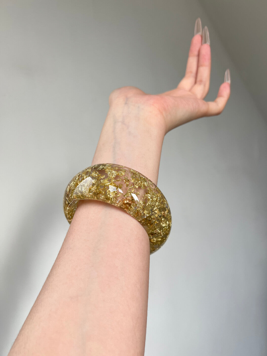 $9.9 each – Vintage Gold Foil Resin Wide Bangle. Buy 2 for free shipping. Affordable luxury fashion accessory, high quality fashion jewelry, perfect for wholesale or styling outfits.