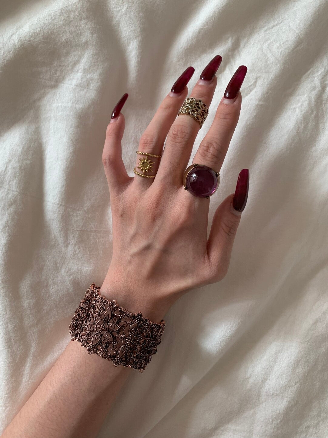 Add a touch of glamour and sophistication with this Vintage Hollow Carved Wide Cuff Bangle. Featuring intricate hollow carvings and a shiny gold and silver finish, this cuff bangle is bold, elegant, and perfect for parties or standout outfits. The open, adjustable design allows for a comfortable fit and versatile styling, whether worn alone or stacked.