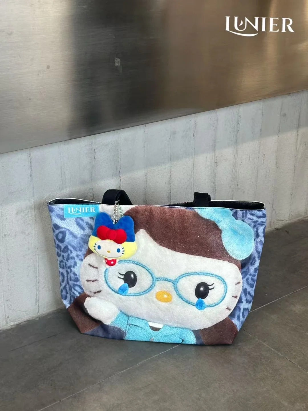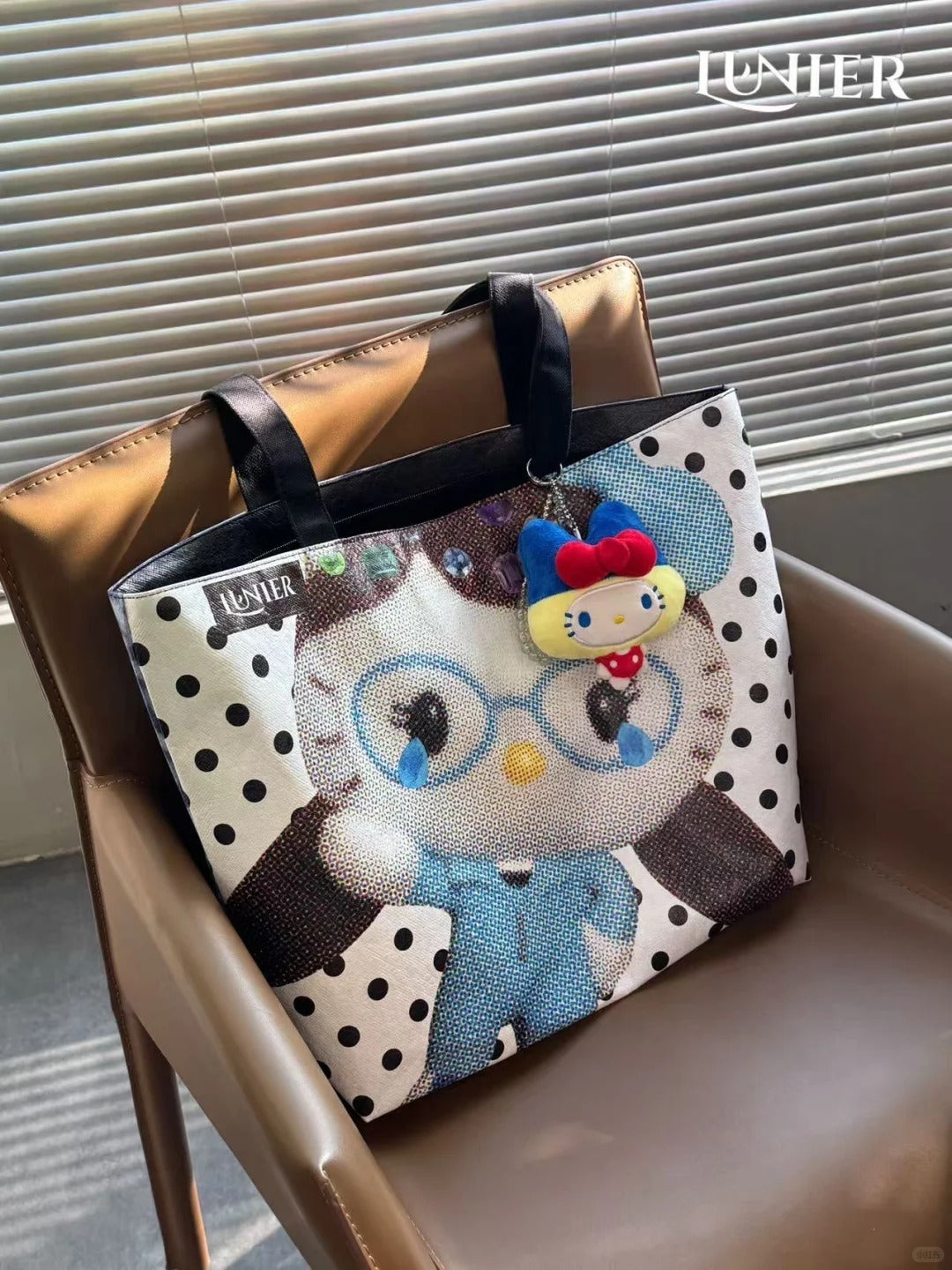 Step into the spotlight with the Kitty Girl Tote from LUNIER. Featuring a bold, pixel-art inspired feline graphic adorned with sparkling gem motifs and a chic polka-dot backdrop, this bag is the ultimate fusion of Y2K nostalgia and modern streetwear. Designed for those who live for an aesthetic edge, it’s the perfect statement piece for your "fit checks," beach days, or city strolls.