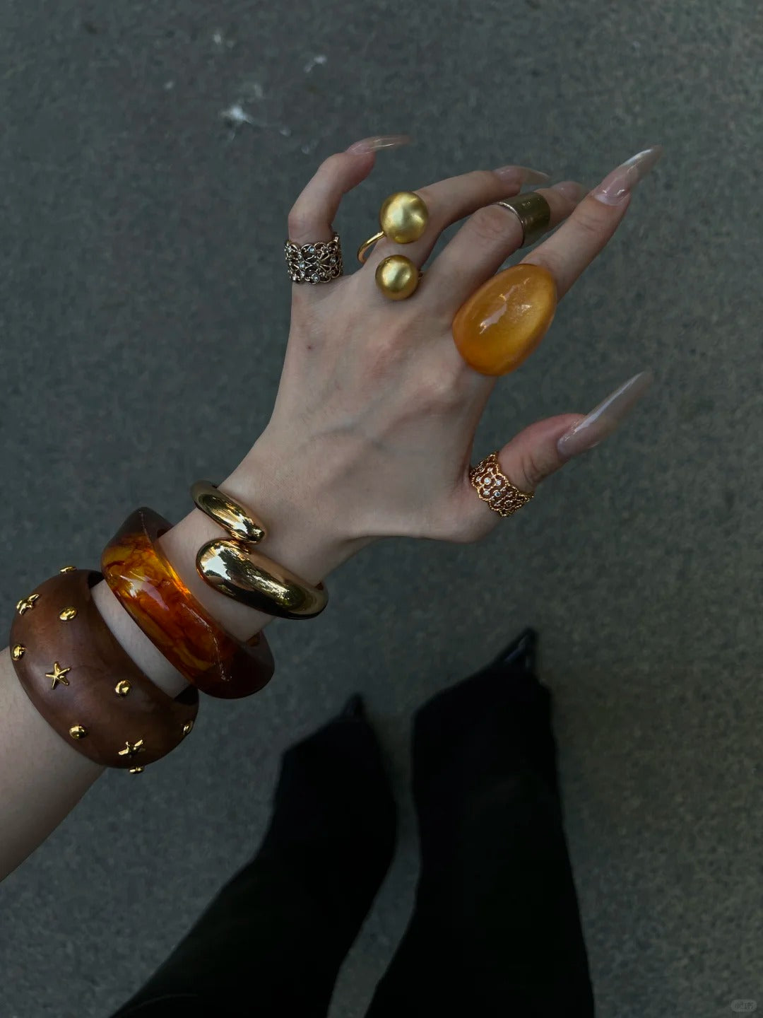 $9.9 each – Metal Studded Wide Wooden Bangle. Buy 2 with free shipping for bold, stackable style.