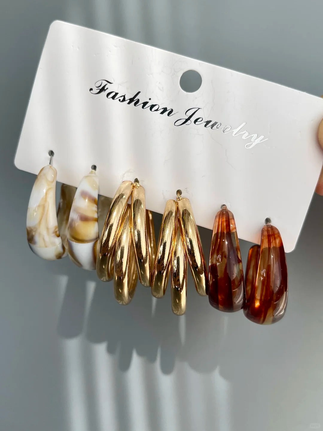 Upgrade your accessory game with this vintage 6-pair acrylic hoop earring set. Each pair features unique colors and bold designs, ideal for mix-and-match styling or wearing all at once. A playful, retro, and versatile set for daily outfits or parties.