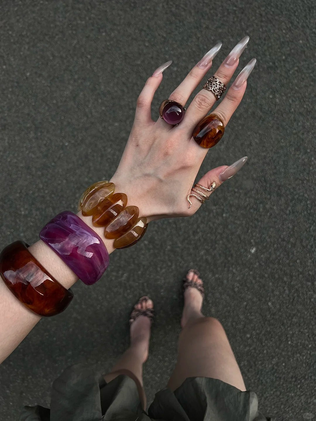 • Vintage-inspired amber shine wide resin bangle